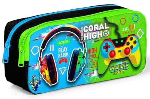 Coral High - شنطة اقلام رصاص من كورال هاي للاطفال بلون اسود واخضر فلورسنت