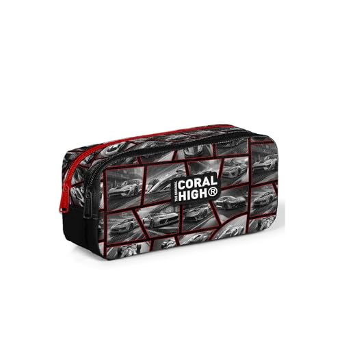 Coral High - شنطة اقلام رصاص مكونة من قسمين بنمط سيارة بلون اسود واحمر للاطفال من كورال هاي