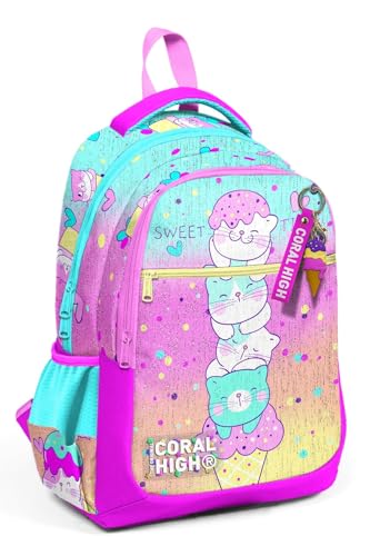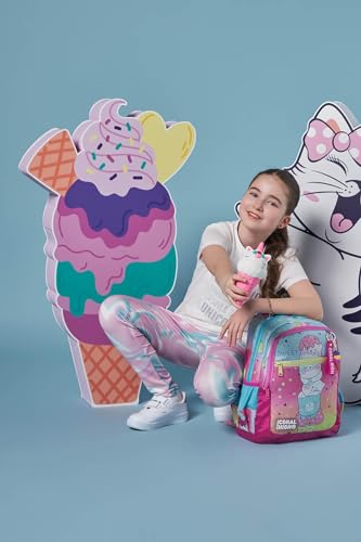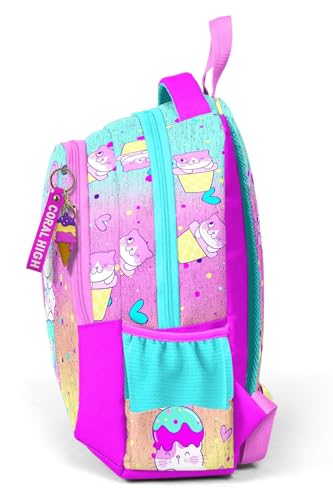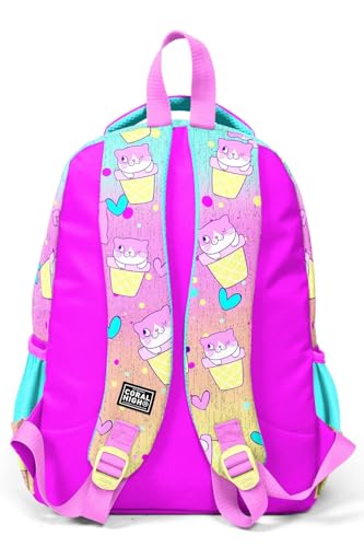 Coral High - شنطة ظهر مدرسية ملونة للاطفال من كورال هاي بنمط ايس كريم وقطة بثلاثة اقسام، متعدد الألوان