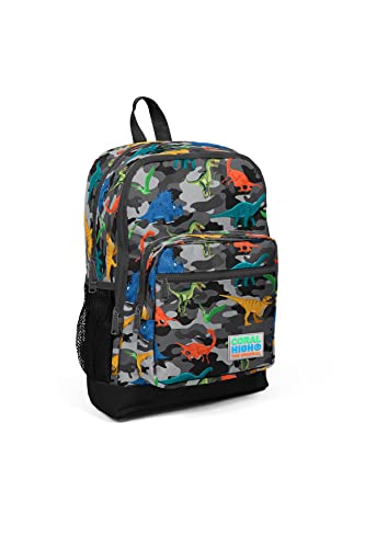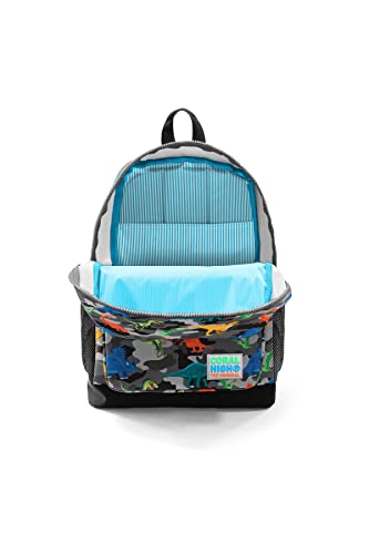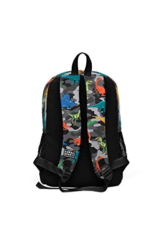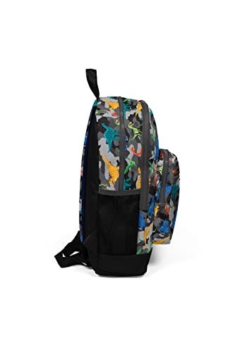 Yaygan - شنطة ظهر مدرسية للأطفال بأربعة جيوب من كورال هاي - لون رمادي غامق وأسود بنمط ديناصور مموه