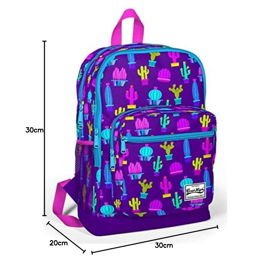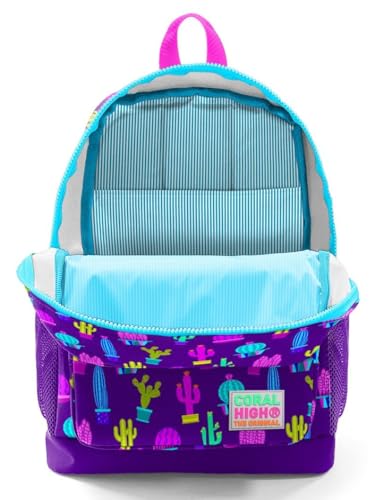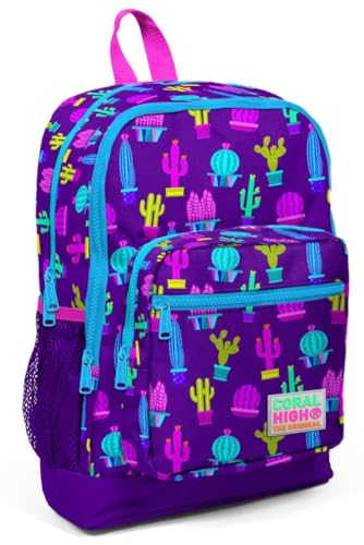 Coral High - شنطة ظهر مدرسية للاطفال باربعة اقسام من كورال هاي - نمط صبار ارجواني وزهري