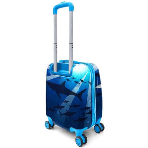 Coral High - شنطة سفر للاطفال من كورال هاي - نمط سمكة قرش ازرق كحلي، بوليستر