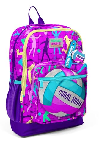 Coral High - شنطة ظهر مدرسية بنمط كرة الطائرة بلون بينك وارجواني للاطفال من كورال هاي، متعدد الألوان