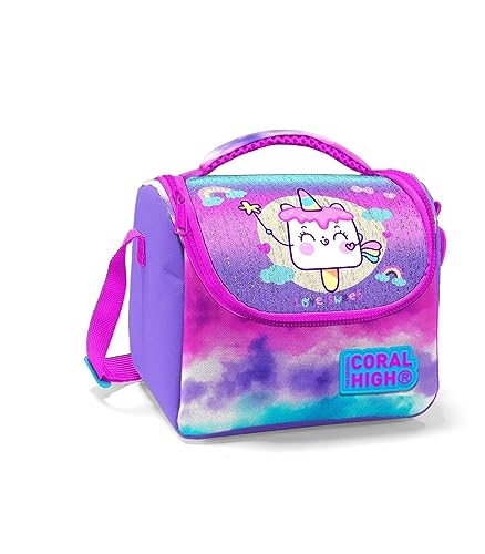 Coral High - حقيبة غداء حرارية للاطفال من كورال هاي - نمط ايس كريم ملون الباتيك يونيكورن متعدد الألوان البوليستر