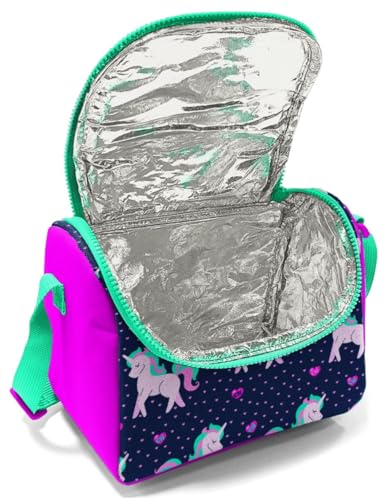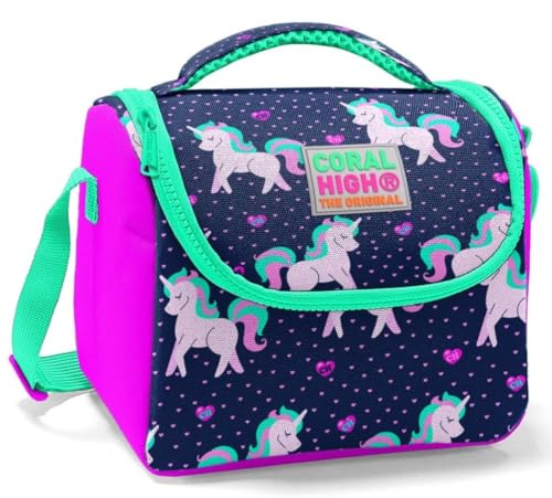 Coral High - حقيبة غداء حرارية للاطفال من كورال هاي - ازرق داكن وزهري بنمط يونيكورن, متعدد الألوان، البوليستر