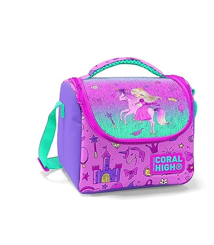 Coral High - حقيبة غداء حرارية للاطفال من كورال هاي - زهري فاتح وارجواني بنمط يونيكورن برينسيس, متعدد الألوان، البوليستر