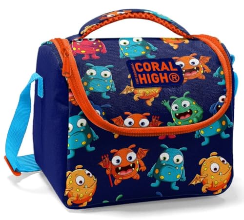 Coral High - حقيبة غداء حرارية للاطفال من كورال هاي - نمط وحش ازرق كحلي, متعدد الألوان، البوليستر