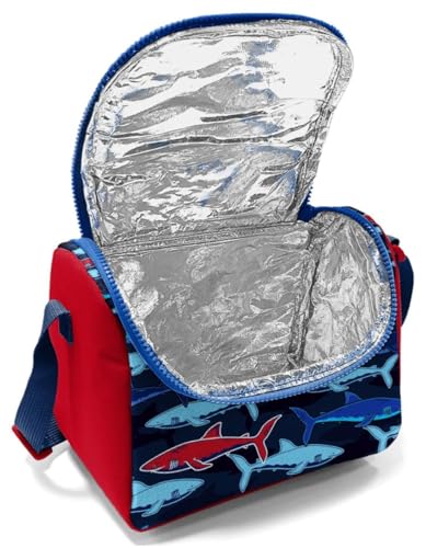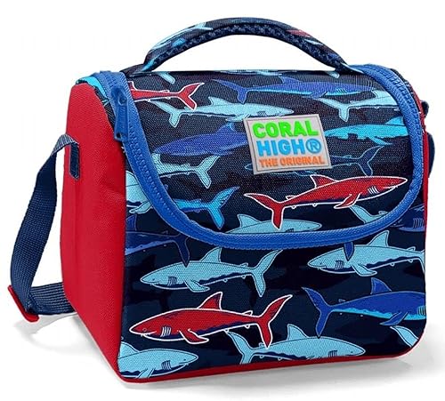 Coral High - حقيبة غداء حرارية للاطفال من كورال هاي - ازرق كحلي واحمر بنمط القرش, متعدد الألوان، البوليستر