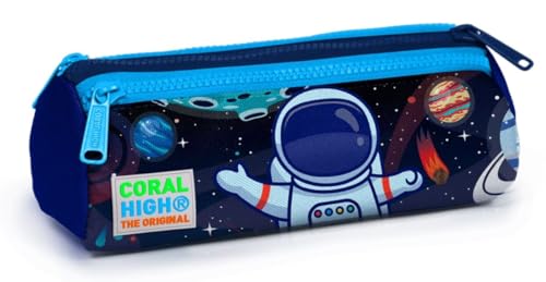 Coral High - مقلمة بثلاث أقسام للأطفال من كورال هاي - لون أزرق رمادي - منقوشة بتصميم رائد فضاء، بولي فينيل كلوريد (PVC)