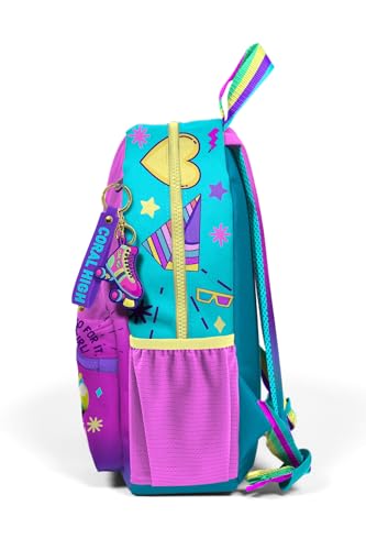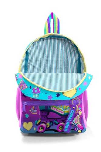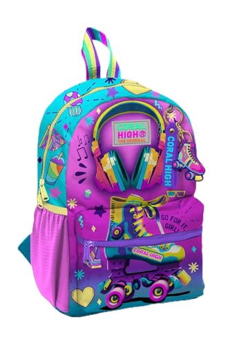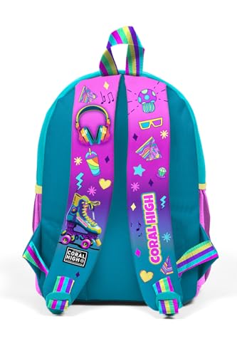 Coral High - شنطة ظهر ميني نيست بلون بينك تركواز وسماعات راس منقوشة بقسمين، من كورال هاي