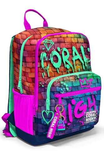 Coral High - شنطة ظهر مدرسية بتصميم جرافيتي بلون بينك وكحلي من كورال هاي، متعدد الألوان