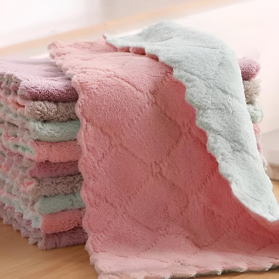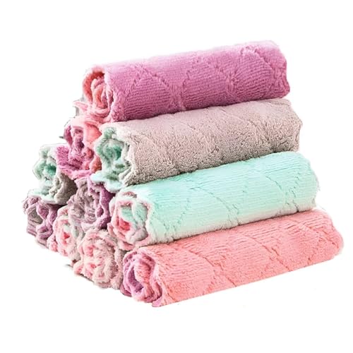 Daga - فوطة قطيفة مرجانية، مجموعة فوط ماصة لتجفيف الأطباق، فوط سريعة الجفاف خالية من الوب للاستخدام اليومي بلون وردي أنيق، 10 قطع