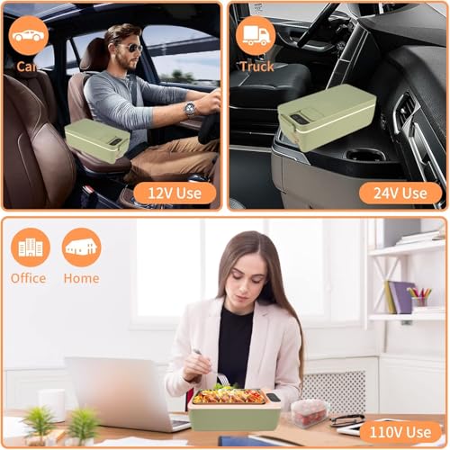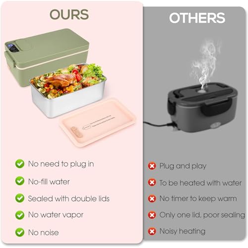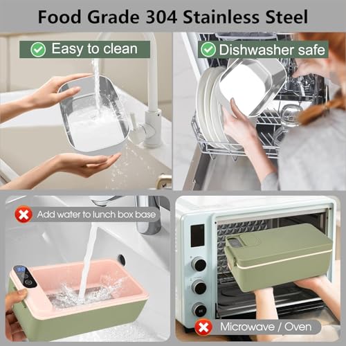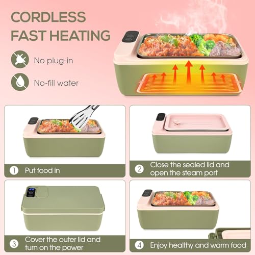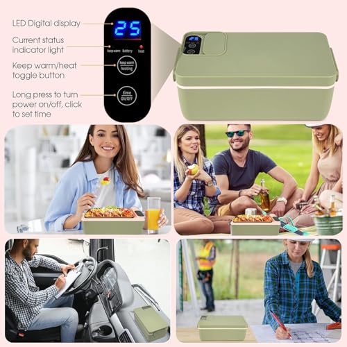 Exrp - صندوق غداء كهربائي لاسلكي، سخان طعام لاسلكي، صندوق غداء ساخن يعمل بالبطارية، صندوق غداء كهربائي USB للبالغين، حاوية ستانلس ستيل 304 سعة 1 لتر، اختيار وقت التسخين، شاشة HD (اخضر)
