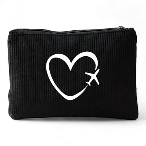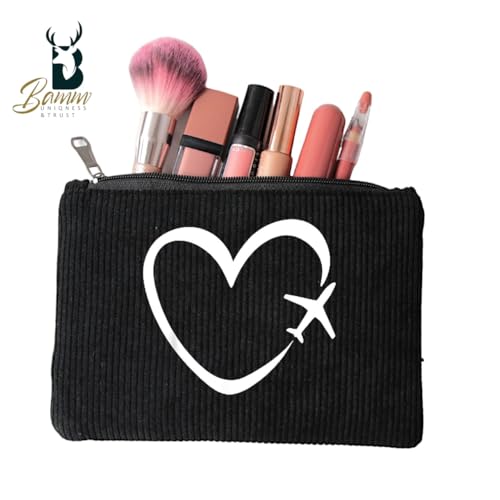 Bamm - مقلمة وشنطة مكياج قطيفة مضلع بسحاب, مقلمة قطيفة مضلعة (Corduroy) - مع طباعة ديجتال (DTF) - مقاس 21×15 سم - أسود -3