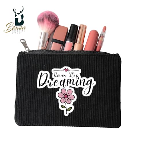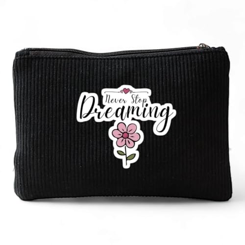 Bamm - مقلمة قطيفة مضلعة وشنطة مكياج بسوستة، مقلمة كوردروي - طباعة رقمية (DTF) - مقاس 21 × 15 سم - اسود - 4