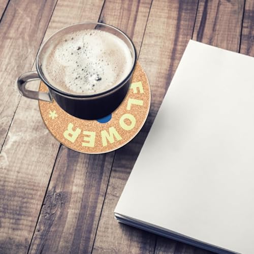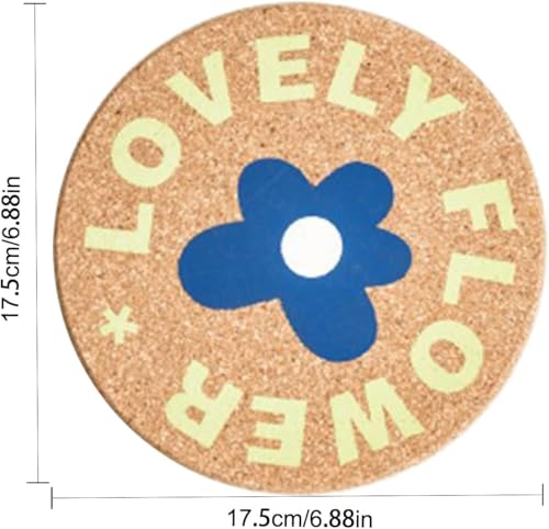 Generic - قواعد أكواب من الفلين بتصميم زهور جميلة، قواعد أكواب دائرية من الفلين الطبيعي، 17.5 سم، عبوة من 6 قطع