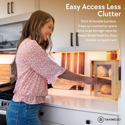 TAVIMOJO - صندوق خبز مزدوج الطبقات من الخيزران لتخزين وتنظيم الخبز في المطبخ بتصميم سهل التجميع لأسطح للحفاظ على طازجا تافيموجو