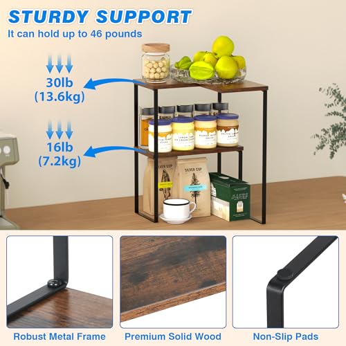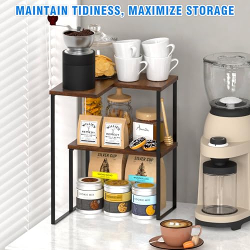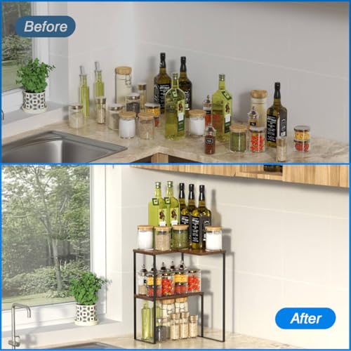Alytree - منظم زاوية لسطح الطاولة، رف مطبخ خشبي للزوايا، منظم سطح طاولة قابل للتعديل من طبقتين للمطبخ والحمام ورف التوابل وطاولة التسريحة (بني ريفي)