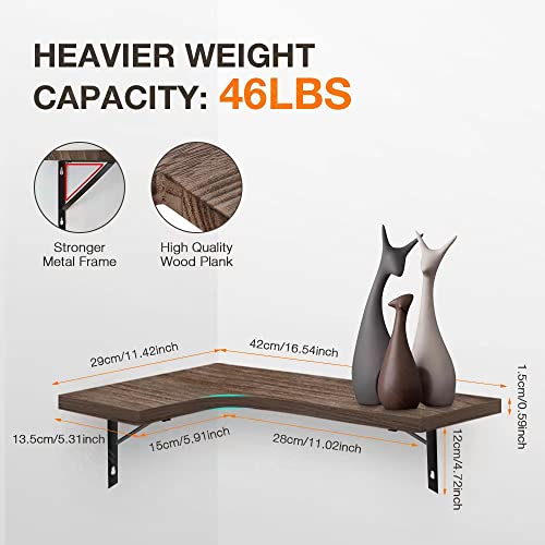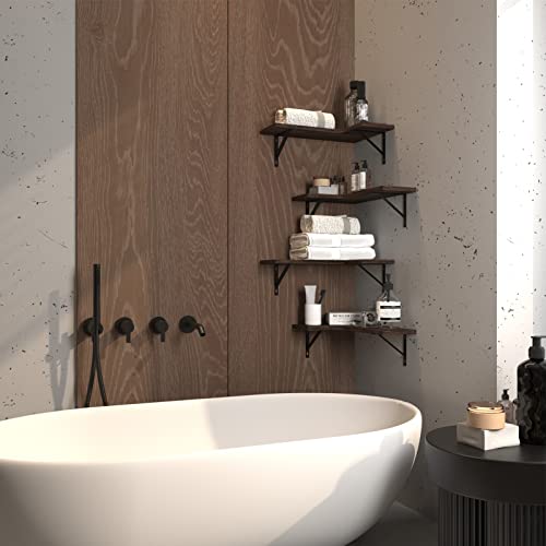 WOOD&LIFE - مجموعة ارفف عائمة للزوايا مكونة من 4 قطع، رف زاوية ريفي يثبت على الحائط، رف تخزين، رف حائط خشبي لغرفة النوم والمطبخ وغرفة المعيشة والحمام والمكتب