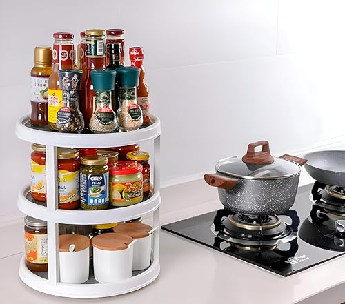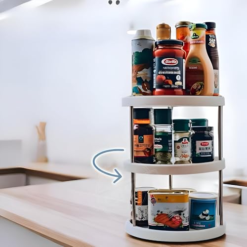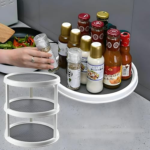 Generic - حامل دوار للزوايا بتصميم منظم دوار 360 درجة مصمم لتخزين المكياج ومستحضرات التجميل ومنتجات العناية بالبشرة وأدوات المطبخ، بالإضافة إلى أغراض الثلاجة بثلاث طبقات متينة لتخزين مدمج وسهل الوصول إليه