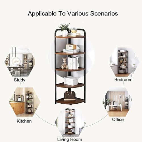 blueland - رف زاوية من 5 طبقات، رف تخزين، خزانة كتب صناعية، حامل نباتات، رف عرض لغرفة المعيشة والمطبخ والحمام وغرفة النوم والمكتب المنزلي (5T- رف)