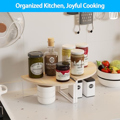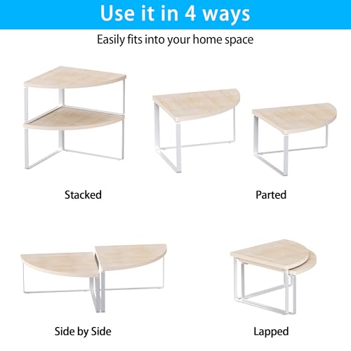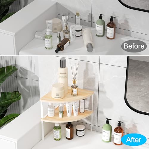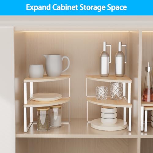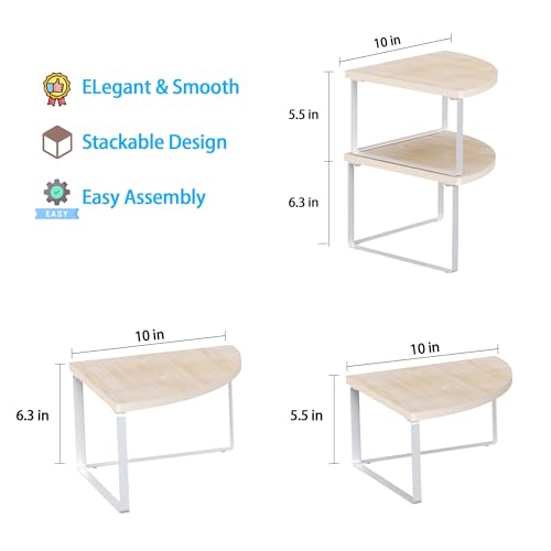 Golener - منظم ارفف زاوية لسطح الطاولة - مجموعة من 2 رف زاوية لتنظيم خزانة المطبخ، رف التوابل، منظم حمام قابل للتكديس، رف للحوض، خزانة الزاوية، ديكور الطاولة، بيج طبيعي