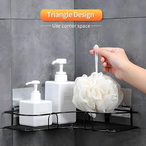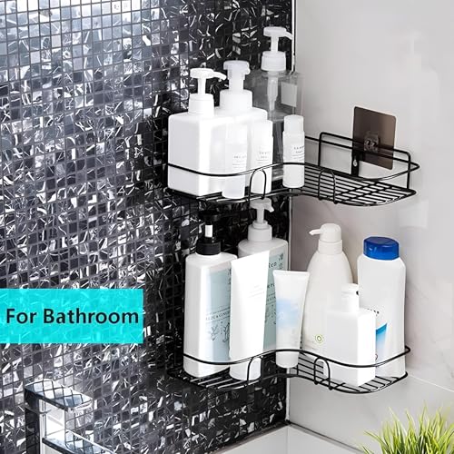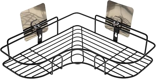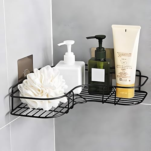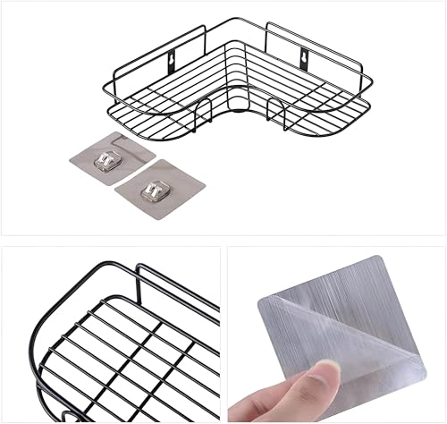 Generic - رف زاوية - رف معدني لاصق يثبت على الحائط من لوكانزا لتنظيم الحمام والمطبخ بدون حفر بلمسة نهائية من الستانلس ستيل الاسود