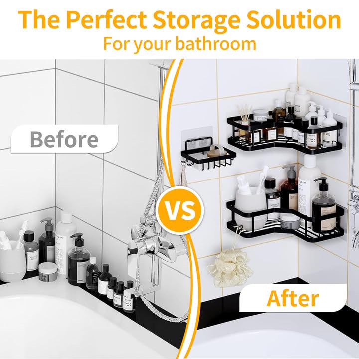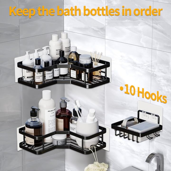 - 🛒【سهل التركيب والإزالة】 زاوية حامل الدش السوداء هذه سهلة التركيب باستخدام لاصق كبير المساحة، لا حاجة إلى أدوات أو براغي. لإزالته: سخّن المادة اللاصقة باستخدام مجفف الشعر لنقل حامل الدش اللاصق، ولن يترك أي أثر ولن يسبّب أي ضرر للجدران.