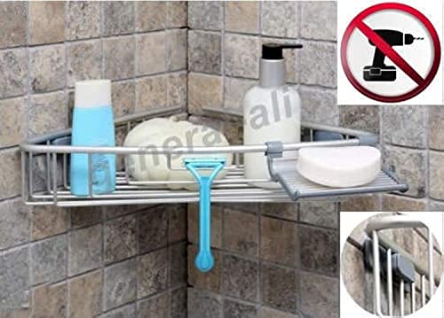 Primanova - رف زاوية حمام من الألومنيوم منظم رف حمام يثبت على الحائط، منظم تخزين للحمام والمطبخ - من طبقة واحدة (فضي)