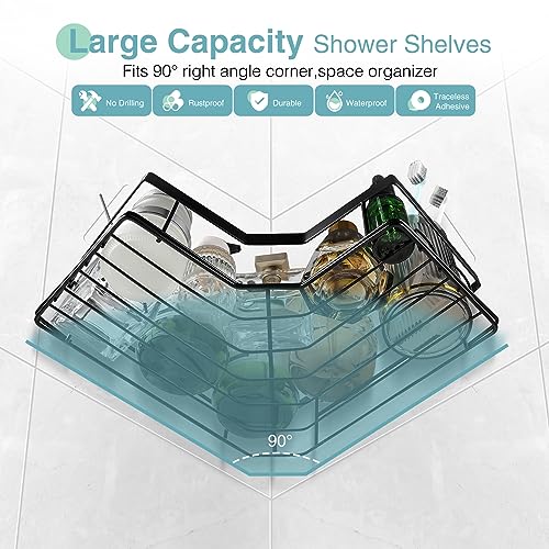 - 🛁قدرة أكبر: يوفر المزيد من المساحة. صُمم حامل الدش على شكل حرف L لتنظيم أغراض الحمام بالحجم الكامل بسهولة أكبر وتقليل الفوضى. يساعد على تجفيف كل شيء بشكل صحيح، لا يسمح للماء بأن يتجمع تحته ويترك بقع. سياج مرتفع على رف الحمام يمنع الأشياء من السقوط. تحتوي كل علبة على 4 خطافات مدمجة لتعليق شفرات الحلاقة أو الليفة أو فرشاة الاستحمام. يلبي احتياجات الأسرة