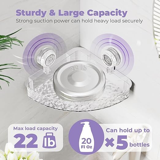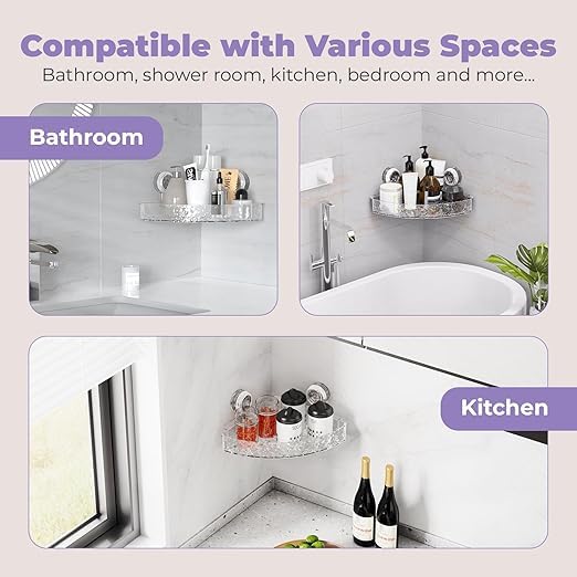 Generic - حامل زاوية للدش مزود بكوب شفط قابل للازالة بدون ثقب رف للحمام والمطبخ وغرفة المعيشة بلاستيك انيق شفاف