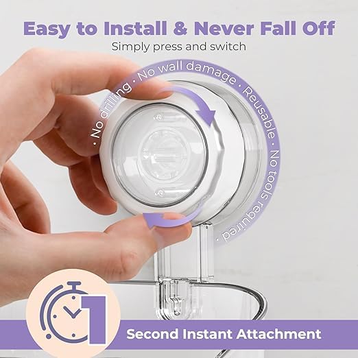 - 【تركيب سهل في ثانية واحدة وقابل لإعادة الاستخدام】التركيب سريع وبسيط للغاية، يتم تثبيته بأمان على الحائط في ثانية واحدة فقط بضغطة بسيطة وتدوير. كما أن الإزالة سهلة للغاية، مما يسمح بإعادة الاستخدام وتغيير موضعها بسهولة، مما يضيف المزيد من المرونة إلى حلول التخزين المنزلية.