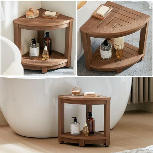 KaimuBench - كرسي استحمام للاستخدام داخل الدش، كرسي استحمام مقاوم للماء للحمام لحلاقة الساقين مع رف تخزين، كرسي استحمام للسبا، مسند قدم للاستحمام مع أرجل مطاطية، للاستخدام الداخلي/الخارجي، لون بني