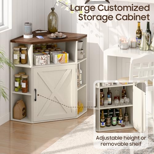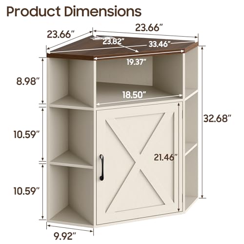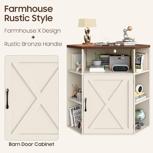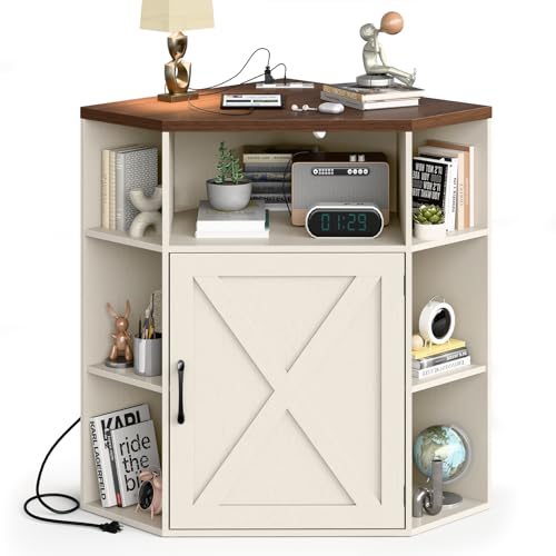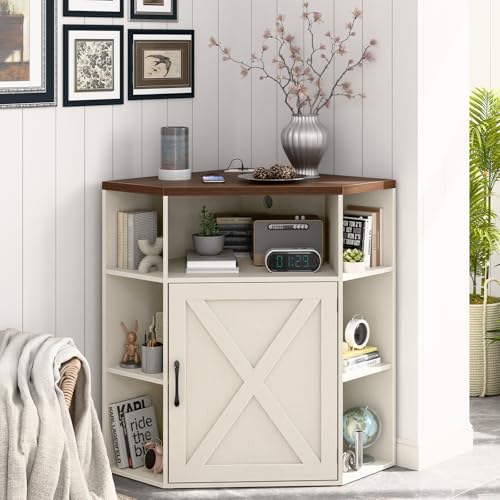 Vabches - خزانة تخزين للزوايا، خزانة زاوية منزل المزرعة مع منفذ طاقة ومنافذ USB للمساحات الصغيرة، منظم خشبي مع باب ورف قابل للتعديل، رف كتب للدراسة وغرفة النوم وغرفة المعيشة والمكتب