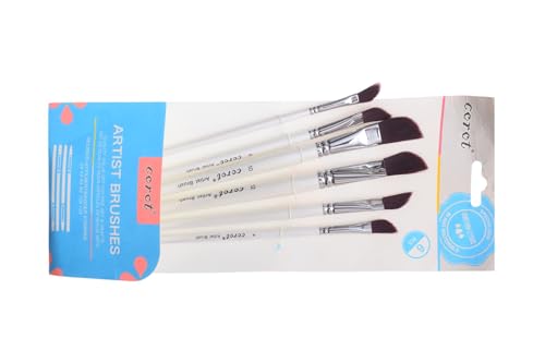 Generic - مجموعة فرش رسم بلاستيك بأحجام مختلفة 6 قطع مقاسات 2-4-6-8-10-12 من كوروت، أبيض