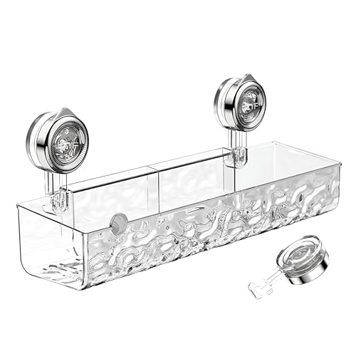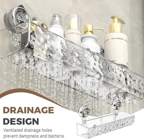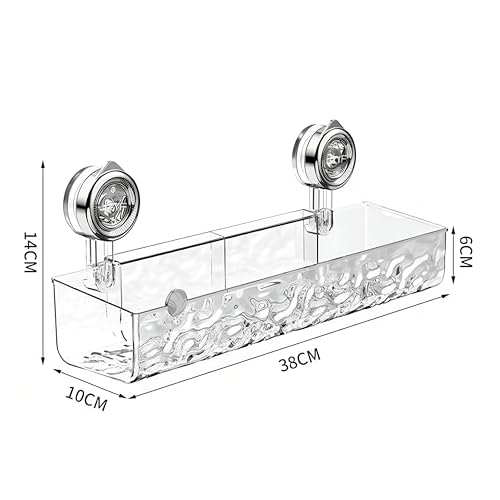 Generic - كوب شفط مموج - حامل تخزين مستطيل شفاف يثبت على الحائط بنمط جليدي، 38 × 14 سم، تصميم بدون ثقب لتنظيم الحمام او المطبخ، متين ومقاوم للتسرب.