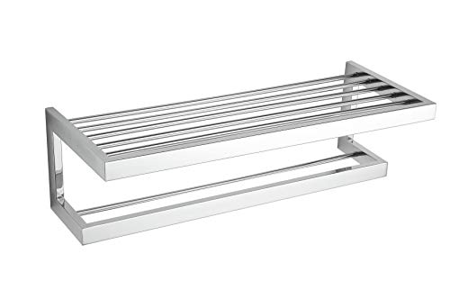 Cortesi Home - كورتيزي هوم حامل مناشف عصري من الستانلس ستيل مع رف من ريكي، CH-BR798110، كروم