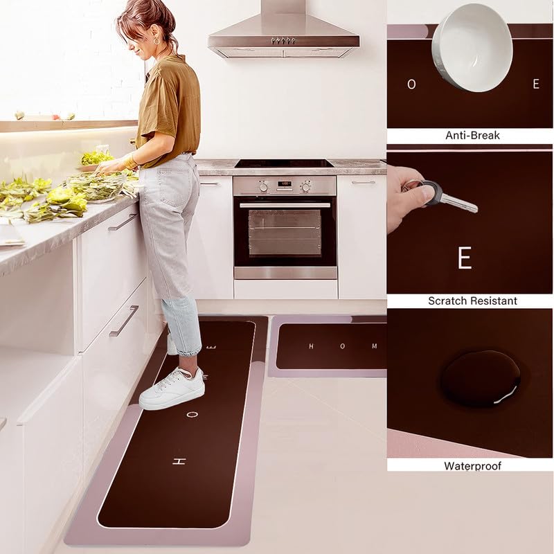 - حجم ومادة مثاليان - يحتوي هذا الطقم على 2 سجادة مستطيلة مضادة للإرهاق في المطبخ (40 سم × 60 سم + 40 سم × 1.20 م)، طقم سجاد مطبخ على شكل حرف L، مثالي للمطبخ. صُنعت سجادة المطبخ المقاومة للبقع من مادة مطاطية + قطيفة تقنية وناعمة الملمس، كما توفر سجادة أرضية المطبخ بسُمك 7.6 ملم مزيدًا من التبطين والثبات. الوسادة الخاصة بنا مضادة للإجهاد وأكثر أمانًا وراحة، وتساعد على تحريك قدميك بسهولة.
