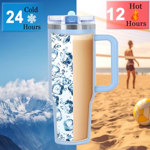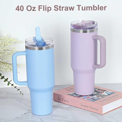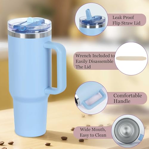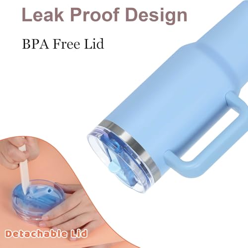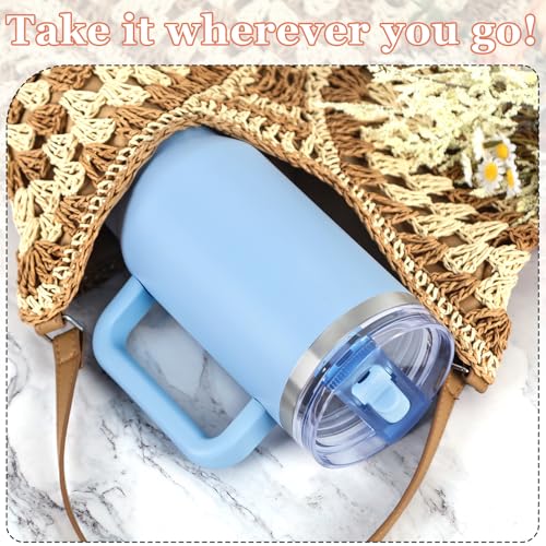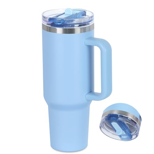 Cosictic - كوسيكتيك كوب بقشة قلاب 40 اونصة مع مقبض، كوب معزول بتفريغ الهواء من الستانلس ستيل بجدار مزدوج وغطاء قلاب مانع للتسرب، ازرق فاتح