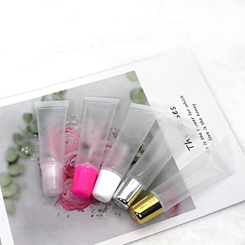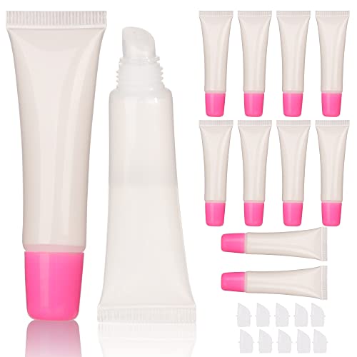 COSIDEA - كوزدديا 10 قطع 12 مل - 0.4 اونصة من انابيب ضغط لملمع الشفاه بلون زهري وردي حاويات ملمع شفاه ناعمة قابلة لاعادة الملء عبوات مستحضرات تجميل وملمع بنفسك بلاستيك