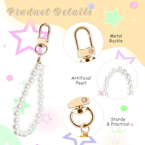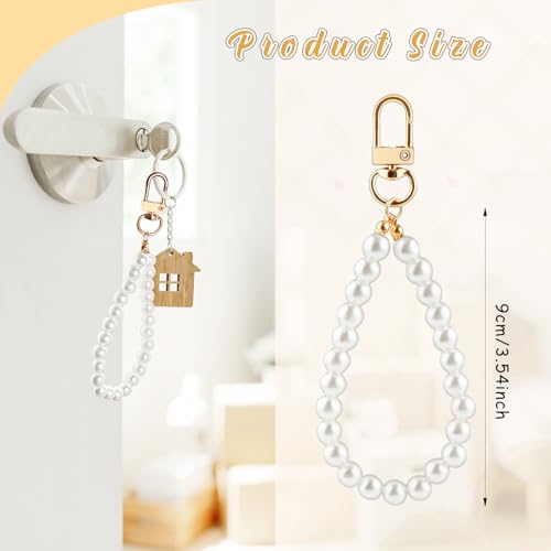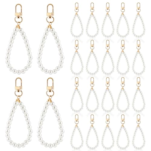 Cositina - 24 قطعة من احزمة سلسلة المفاتيح المزينة باللؤلؤ الصناعي من اللؤلؤ الصناعي، حلقة مفاتيح، سوار معصم زينة للنساء والفتيات، ابيض، مقاس واحد