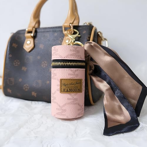 Generic - شنطة مستحضرات التجميل - شنطة أحمر شفاه صغيرة مصنوعة من الجلد الفاخر مع حلقة سلسلة مفاتيح مرفقة، مثالية لتنظيم المكياج والراحة اليومية في السفر