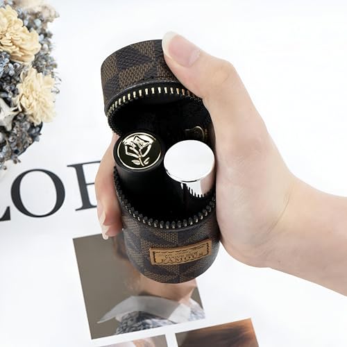 - منظم أحمر شفاه أنيق مصنوع من الجلد الطبيعي، يحمل ما يصل إلى 3 أحمر شفاه، يتضمن وشاحًا حريريًا وسلسلة مفاتيح للاستخدام اليومي العصري والسفر.