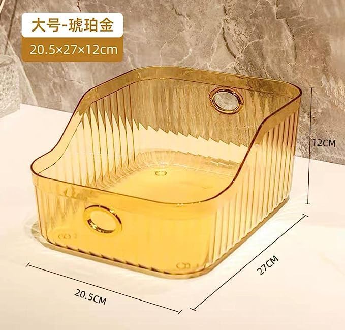 - [حاوية قابلة للتكديس]: يمكن تكديس صندوق تخزين أدوات الزينة بسعة كبيرة للتخزين، مما يجعل سطح مكتبك منظمًا وأنيقًا ومريحًا وعمليًا.