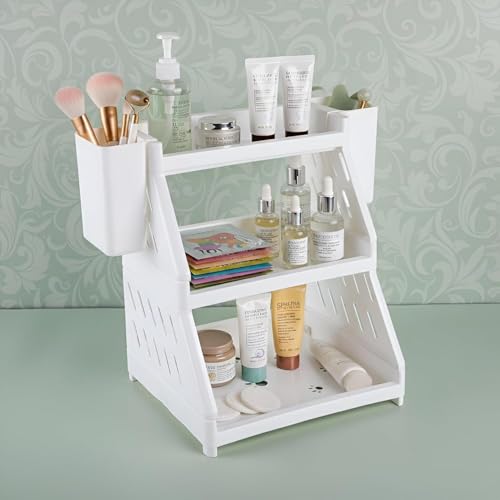 Generic - تخزين مستحضرات التجميل - منظم مكياج مكتبي مزدوج الطبقات لاحمر الشفاه وظلال العيون والاشراق المتنوعة، مثالي لديكور الحمام والمكتب، موفر للمساحة وانيق، متعدد الالوان