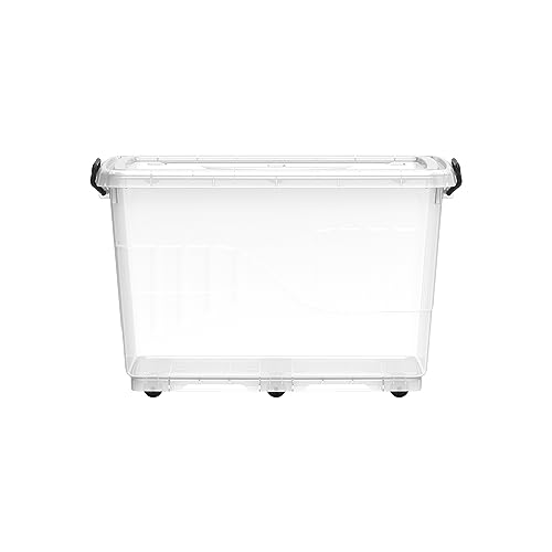 Cosmoplast - صندوق تخزين بلاستيك بعجل واغطية قابلة للغلق من كوزموبلاست، شفاف، سعة 82 لتر