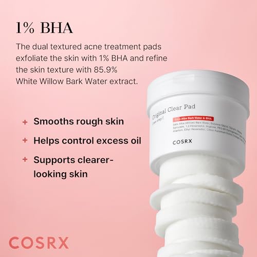 COSRX - وسادات ون ستيب شفافة أصلية من 70 قطعة كوزراكس وسادة حب الشباب مقشر خفيف مع BHA للبشرة الحساسة - منعشة للعناية بالمسام والبثور