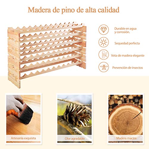 COSTWAY - كوستواي رف نبيذ من 6 طبقات، رف نبيذ قابل للتكديس لـ 72 زجاجة مصنوع من خشب الصنوبر، حامل زجاجات النبيذ مع 6 خيارات ارتفاع، بحد اقصى 90 كجم، للمطبخ والبار، 119 × 29 × 72 سم