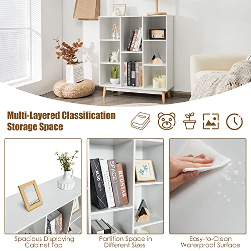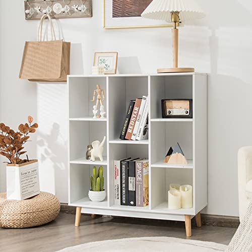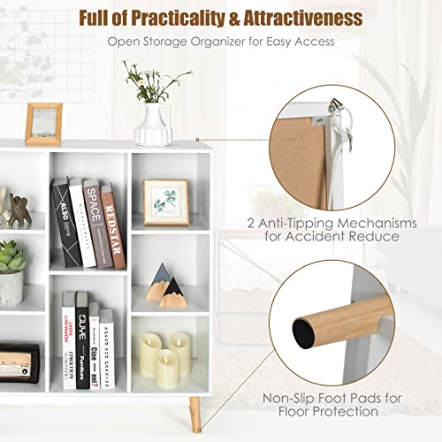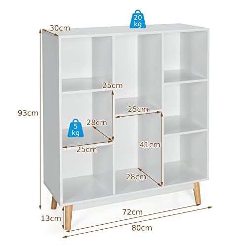 COSTWAY - كوستواي خزانة كتب خشبية قائمة بذاتها بـ8 مكعبات جانبية لغرفة المعيشة وغرفة النوم والرواق وحدة منظم 80 × 30 93 سم ابيض .