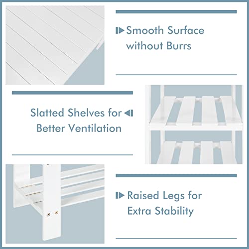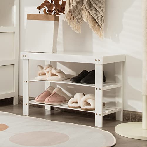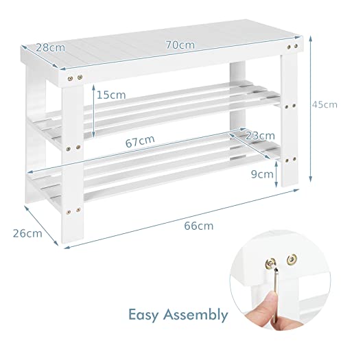 COSTWAY - كوستواي مقعد تخزين احذية من الخيزران، حامل احذية من 3 طبقات، رف تخزين منظم احذية للمدخل والممر وغرفة المعيشة، 70 × 28 × 45 سم (ابيض)